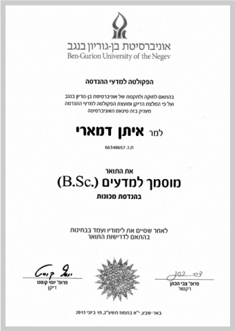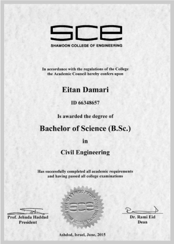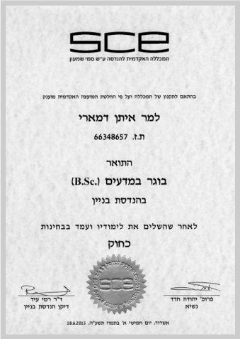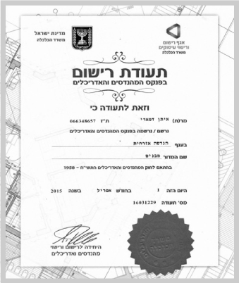 מספר רישיון מהנדס אזרחי: 16031229 | מספר רישיון מהנדס מכונות: 15809535.